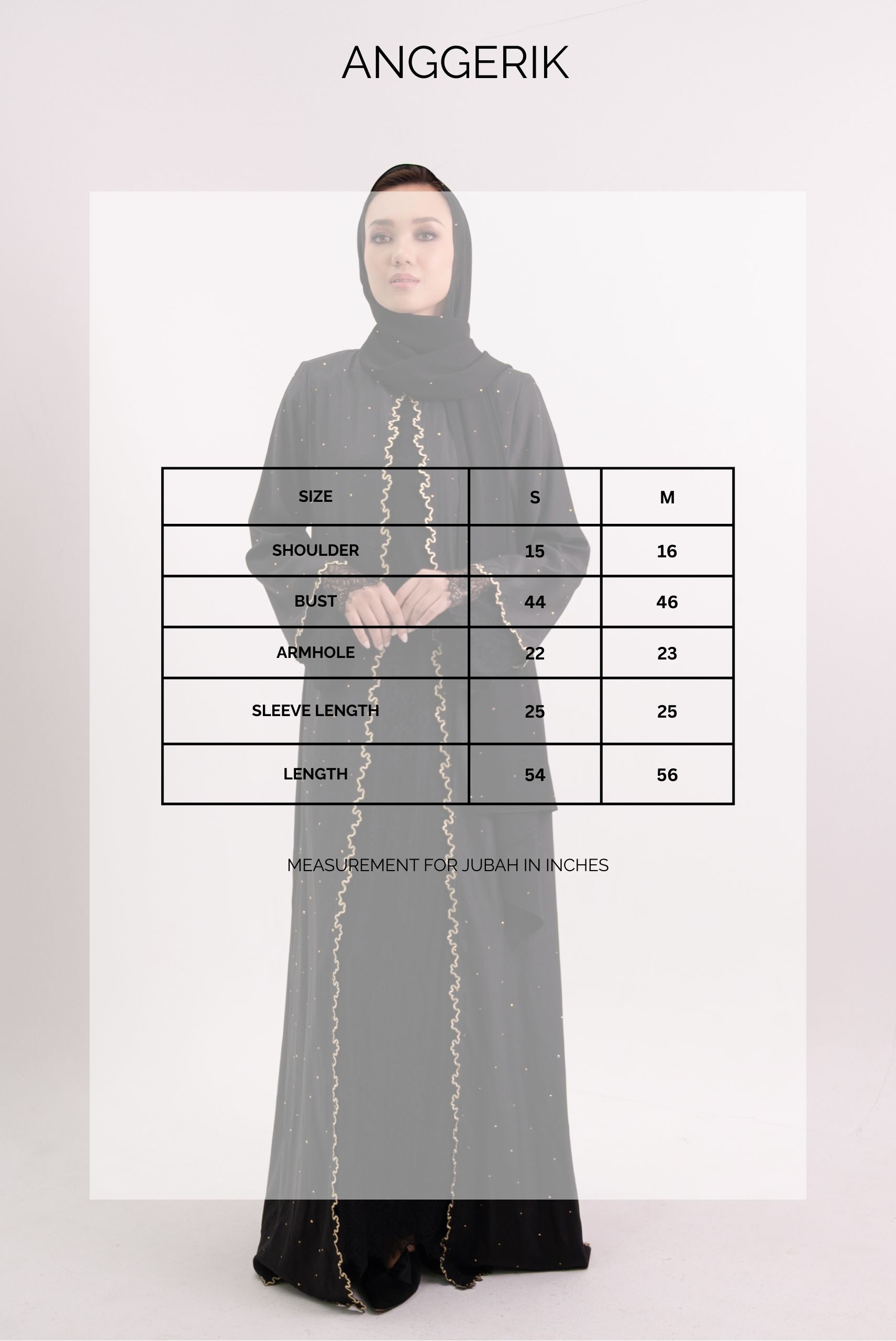 Measurement for Jubah in Inches