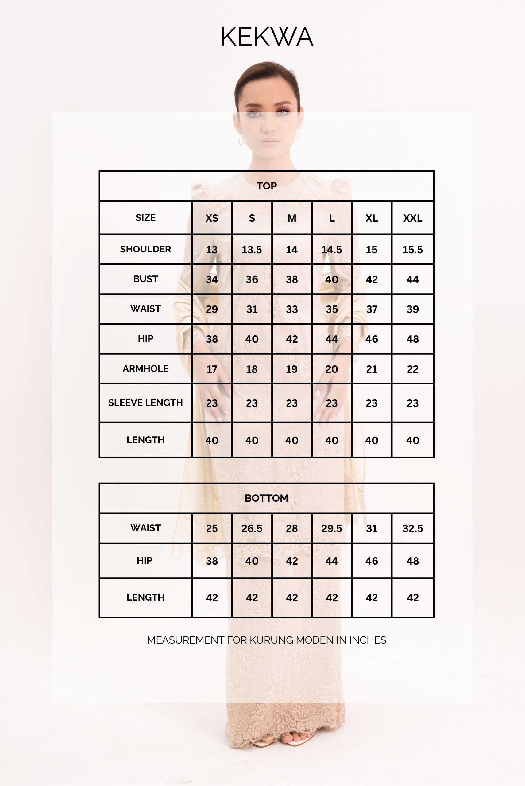 Measurement For Kurung Moden in Inches