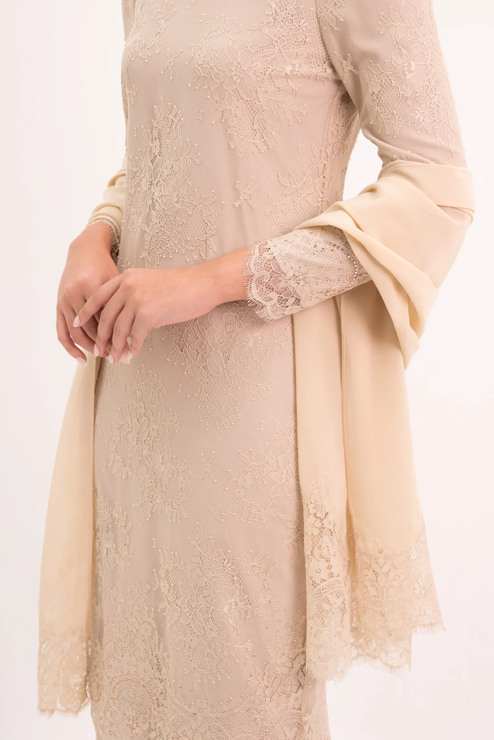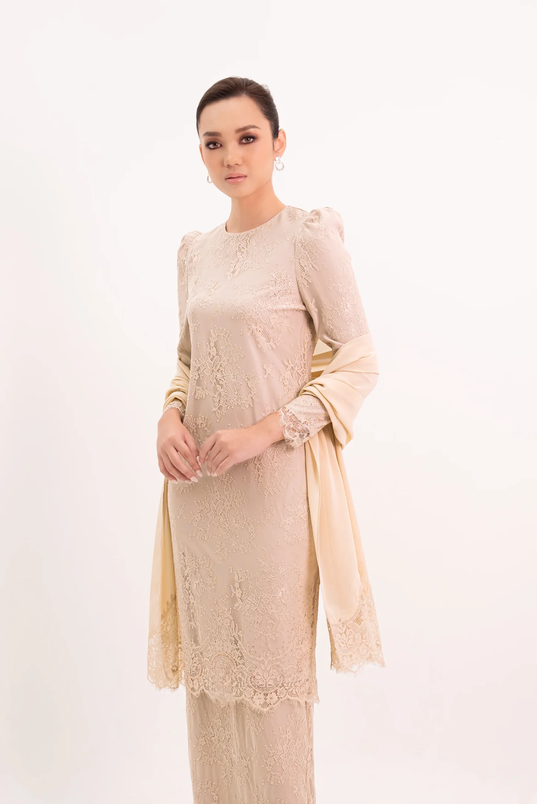 - Modern cut full lace kurung with lining