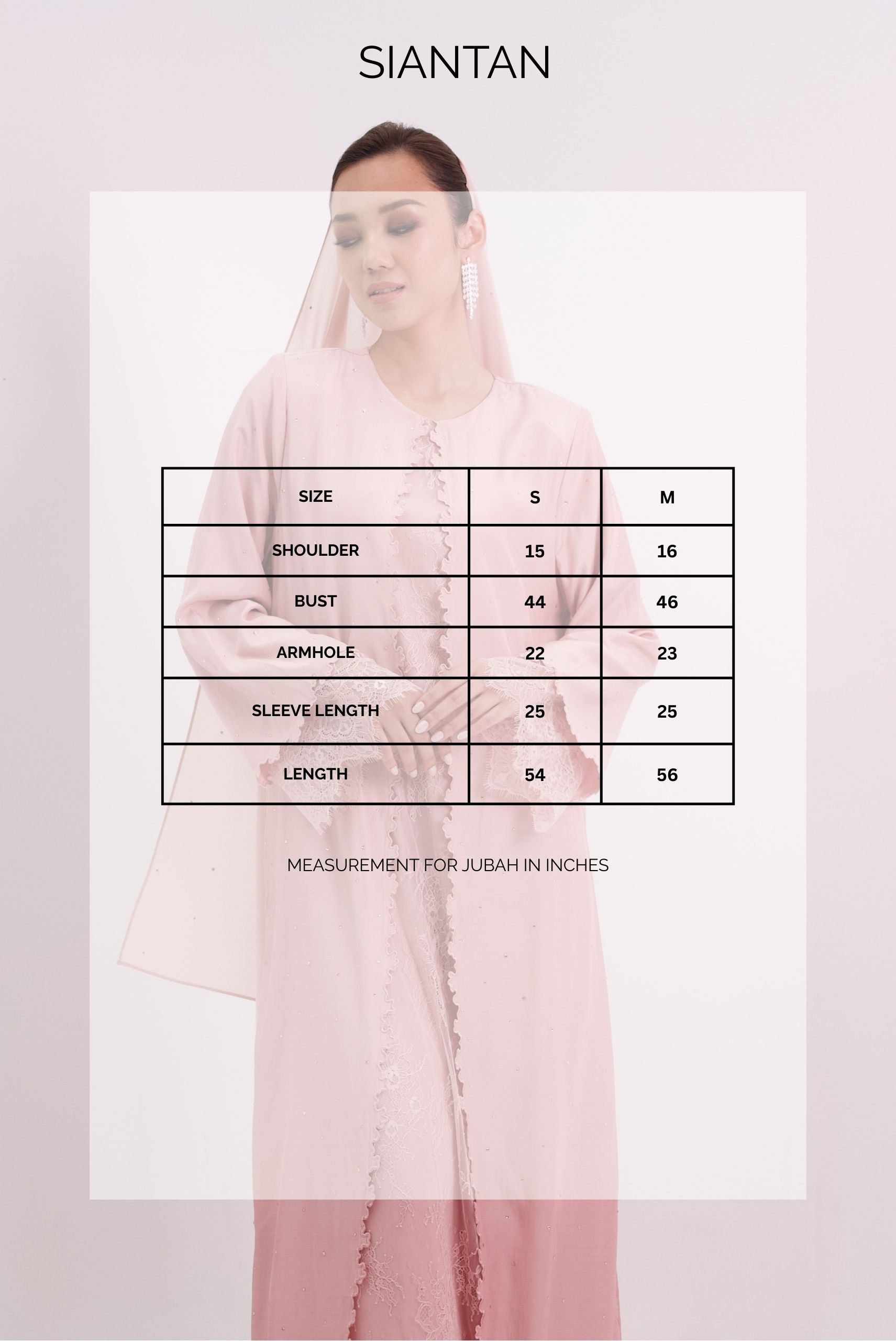 Measurement for Jubah in Inches