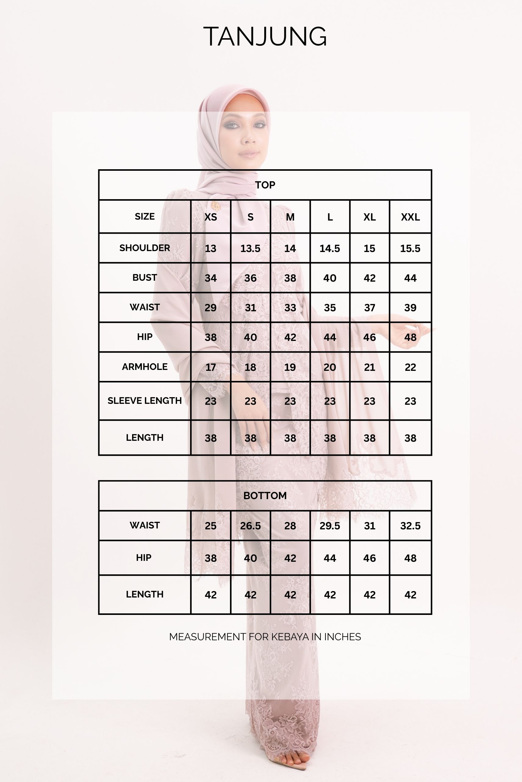 Measurement For Kebaya In Inches